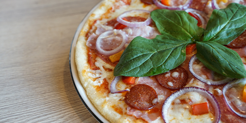 Babyspinat | Kochschinken | Salami Milano | Peperoniwurst | Bacon | rote Zwiebeln | Paprika